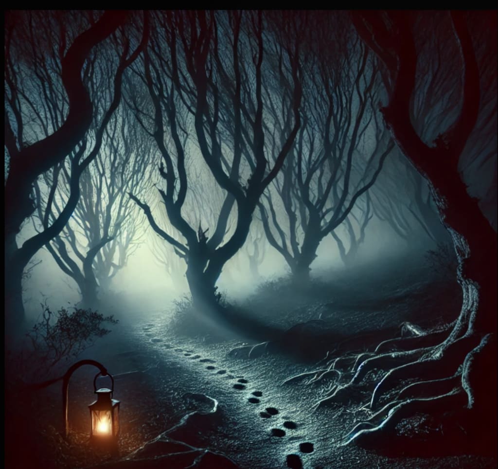 Mira stepped onto the forest path, a lantern in hand to cut through the deepening shadows. The air was dense with silence; not even the sound of crickets or owls broke through the stillness. The fog clung low to the ground, wrapping around her ankles like ghostly fingers. She felt a shiver, but brushed it off, telling herself it was just the evening chill.