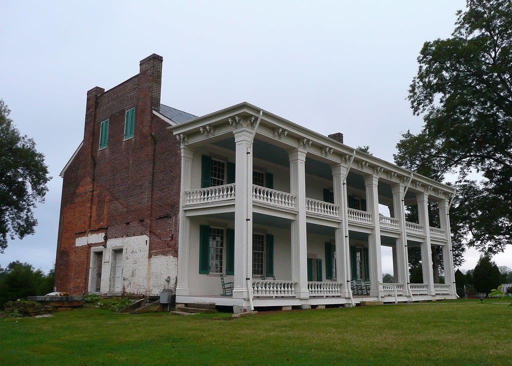 The Carnton Mansion has two stories with 22 rooms. It is an early 1800s brick structure with seven beautiful white columns and a front porch both upstairs and downstairs. A verandah and closed porch are found along the backside of the mansion. The color schemes used in decorating were the colors that were popular during the discovery of Pompeii and popular in American decorum at this time. The colors are mustard yellow, dark blue, and Pompeii red.