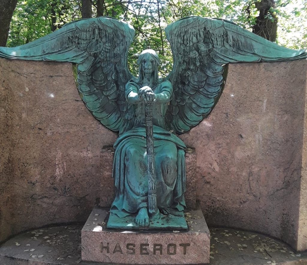 Priscella leans over and butterfly kisses his brow. She moves away and pulls a vial from her clutch, offering it to his trembling outstretched hand. "You may need this. It's the anti-venom," she says with a hint of remorse. "Or, it's more venom. Either way your suffering will be over." Priscilla hands him the vial which he fumbles to his feet and surrounding debris. She huffs and picks the vessel up. As she goes to turn off all of the lights in the parlor except for the small Tiffany lamp in the obscure corner where the 'Angel of Death' lives, she places the vial at its feet. Priscilla nods to the Haserot Angel "He will decide your fate." She blows a kiss to Chadwick and locks the door behind her.