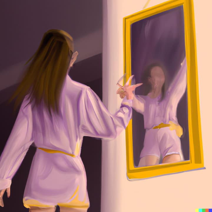 And then, one night, Jenna woke up to find herself standing in front of the mirror, staring into its glassy surface. She didn't remember how she got there, but she couldn't tear her eyes away from the reflection.