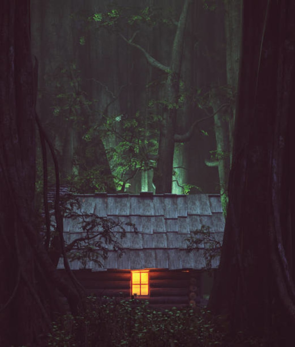 The cabin in the woods has been abandoned for years but one night a candle burned in the window. In the tall weeded area in the North of Parallel Forest, antlers rose in front of the window and framed the candle like a portrait. Then came her face. She was beautiful, with rosy pink cheeks and blue beaded earrings hanging from the antler tips. And she runs off.