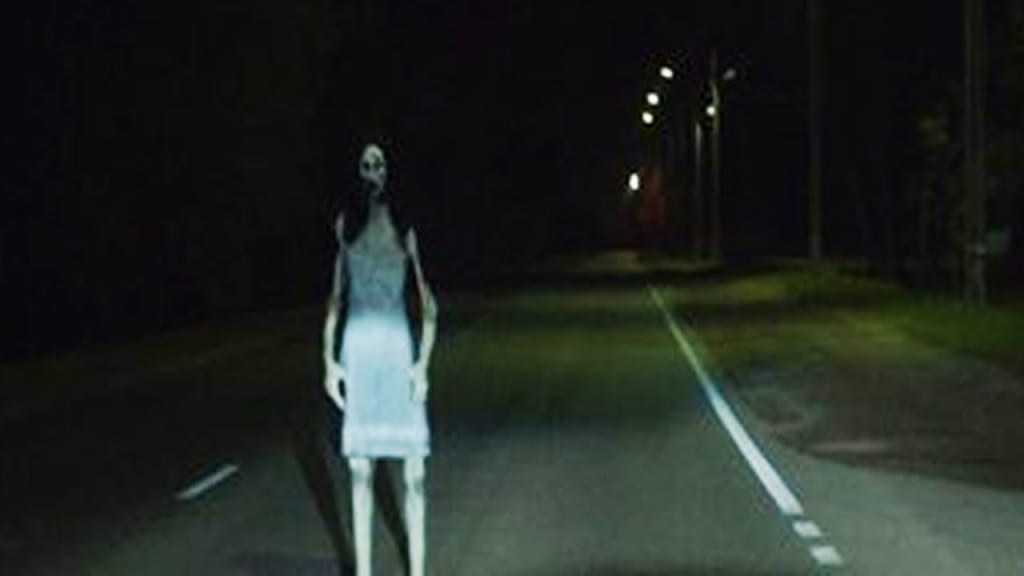 Finally, Caleb gathered his wits about him. “I’ve got to… I don’t know, but…” he was saying to himself as he threw off the seatbelt and turned to open his door. In that moment, he looked through the window and his heart skipped a beat as, even through the darkness of the night, he could see the bloodied face, grinning with blood-soaked teeth, looking with wide blue eyes. She stood there, laughing; hair all disheveled, with broken limbs hanging down, it was the woman he had just plowed into in his car, but she was now bearing down on him with deliberate menace. One of her eyes bulged out and looked sideways. Soaked from the rain and covered in her own blood, she just laughed and grinned. Caleb’s head shot back in surprise, as he looked at her, he could see that her movements were like those of some sort of hell-borne puppet from the fourth circle of Dante’s Inferno, as she lifted up her broken arm, her head tilted at a disturbing angle from her neck having snapped. Her freshly broken arm twitched up, and flung forward towards Caleb; her wrist was so badly broken that her hand was turned completely opposite, so that it looked as though she had two left hands, and her broken fingers smacked against his window.