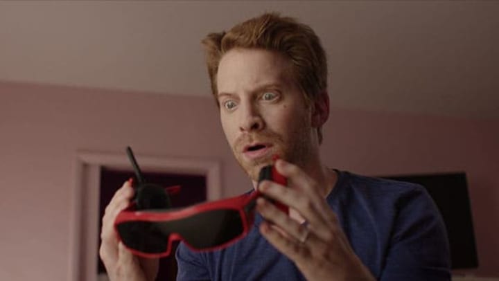 "Show me your pussy"! A meta take on the webcam-porn industry, "Halloween" would work perfectly with a different title. Suffering from 'Seth Green syndrome', you would expect the film's best-known director (Clerks/Mallrats) to have the best story. A flimsy link to the actual holiday means wasted potential on what is arguably the best title to have for a short in a horror anthology. Harley Morenstein is the douchebag boss of three young women as he runs an internet porn site. Luckily there is comeuppance on the wrong end of a car battery and justice is gleefully dished out behind the cold screen of a computer. Made all the more sinister by winking emojis and typed threats, "Halloween" is oh so close to being good. I can assure you though, you will never look at Hot Pockets the same way again.