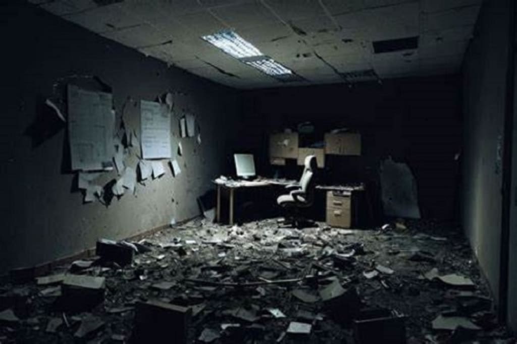 But it wasn't some ill-fated executive. This presence reeked of moldy paper and stale coffee turned sour from decades spent sitting at the same desk. Its touch invoked visions of a valuable life forever lost in cubicle labyrinths that were impossible to escape. Its moist breath covered my skin with putrid droplets of spackled spit, my hair and suit ruined by the foul exhalations of a concrete behemoth that ate people every single day; a monster whom, every so often, wouldn't spit them back out again. The presence was the very building itself.