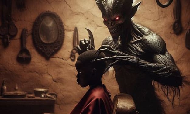 Peering through a window, Kwame and Ogi were met with a horrifying sight. Inside the hut, Amma, now in her true form as an old, haggard woman, was stirring a cauldron over a roaring fire. The stench of rotting flesh filled the air, and as the couple drew closer, they realized that the "bush meat" in the cauldron was not animal meat at all—it was human flesh.