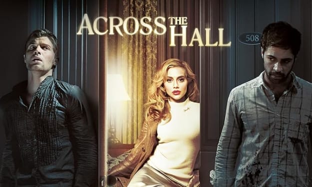 I am warning you. Do not leave your hotel room. Across the Hall is a thriller that entered theaters in 2009. Julian is convinced that his girlfriend is having an affair. In a desperate attempt to confront her, he goes to a rundown hotel and makes an alarming discovery that his best friend Terry is in a dangerous situation involving a hostage.
