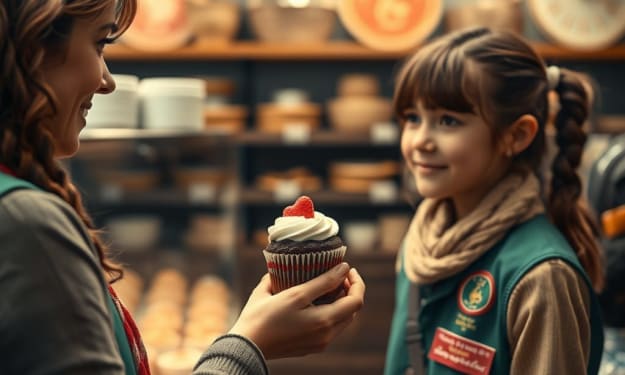 A woman accepts a “free” cupcake in a fairy-owned bakery. [Generated] Elsa loved the Cafe of Daione Si. The colors were brighter than the other coffee stands, the coffee just a little sweeter, and they served the most wonderful little sandwiches. Combined with the WiFi, the place was perfect for someone working on the Great American Novel. Elsa came here frequently; it was the perfect place away from home.