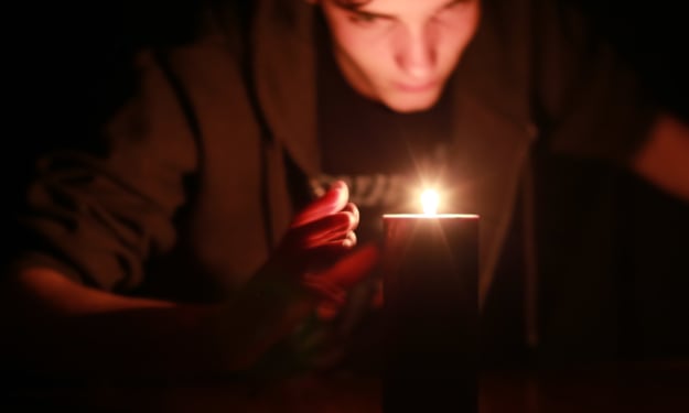 The cabin in the woods had been abandoned for years, but one night, a candle burned in the window. Silas and his sister, Lucy, were walking their dog up the dirt path that wound its way around the ancient oaks when they noticed the light burning in the window. They both stopped still, staring silently at the cabin in an open question, and Hunter took his opportunity and pulled free of Lucy's grip, running over to sniff around at the rusting water tank that stood across from the dilapidated shack. Silas caught Lucy's eye, and shrugged towards the cabin, but she glared at him and, with a roll of her eyes, sighed, "This better not be like last time dude. Let me tie Hunter up." Without response, Silas turned back towards the cabin to stare again at the candle burning in the window, and suddenly he found his feet tracing their way towards the door.