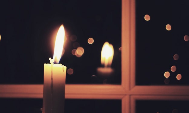 The cabin in the woods had been abandoned for years, but one night, a candle burned in the window. The candle burned brightly, casting a warm and welcoming glow out into the rainy winters night. Light and shadow twinkled down a meandering path, through lichen covered trees, to where a weary traveler approached.