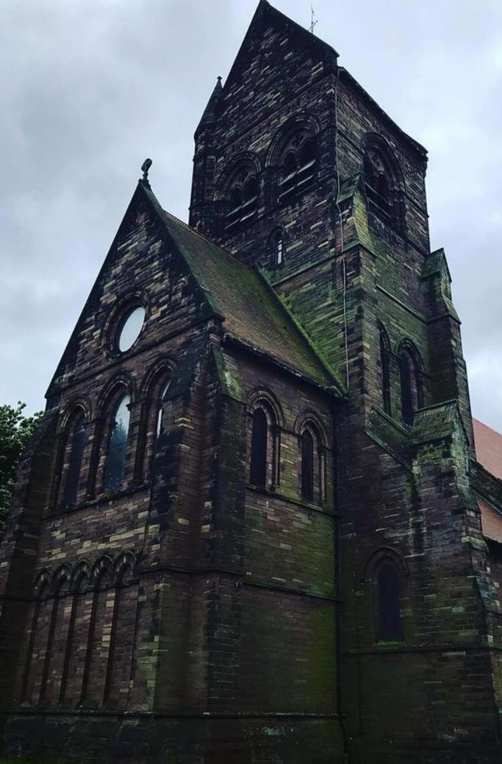 Vines of ivy crept up and around the church. Their thick girth sniffing, searching and finding nooks that my eyes could not. They would latch in to it, anchor a support, weave an ostentatious loop before catapulting off, scaling further up the wall like expert climbers, and reaching such a height that they had knit a blanket over the slated roof, permitting only small patches of evidence for what lay beneath. Nature tending to what humanity shrugged off.