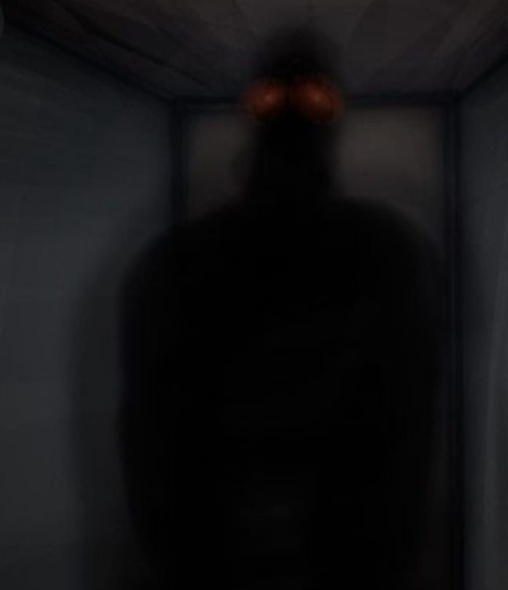 There it was! The terrifying, tall, dark figure, now floating at the top of the stairs. Its glowing red eyes were burning right through our skulls! I had never been more terrified in my life, and I was praying to God that I would just wake up but I knew nightmares, and this was no nightmare. This was real. I was frozen almost to death, unable to look away from the piercing red eyes. Jake suddenly let go of my hand and in a panic, he threw himself out of the second story cabin window.