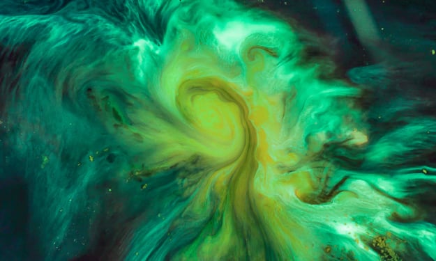 After a short walk, I arrive at the foot of an altar where there lie three basins. Each bowl has a symbol in front of it, carved into the large stone pedestal on which all three rest. The first symbol was a circle with a line underneath and a single dot above. I pull out my postcard and flip it to show a chart with different symbols and their translations. In amongst this ancient language, I find what I am looking for: this land of mine. I rush to my bag and retrieve a glass flask filled with deep purple grains of sand, flecked with red and black. I carefully remove the cork and watch the foreign dirt trickle into the first basin. An hourglass slowly letting time pass by. The next symbol is similar to the letter ‘Y’, but with two lines running vertically from the base instead of one. I am already very familiar with this marking: true believer/disciple. I place the flask on the ground and unsheath the knife on my belt. Over the middle basin, I hold the hilt in my right hand and the blade in my left. Without hesitation, I pull the knife toward my body and flinch as I feel the blade slice my palm. I hold my hand still and watch the deep red fall from my palm to splatter and pool on the stone below. I quickly rip fabric from my undershirt and wrap it tightly around my hand to stop the bleeding. The final symbol was one circle inside another, with a line slicing vertically through both of them. I refer to my chart once more: direct line. What does that mean? I search around the basin for another clue, something to lead me in the right direction. The stone is rough and warm to the touch, but there are no other markings. I look back at the card and its translations: fire, divine, world, devour, descendant. Descendant is two circles, one inside the other. Direct descendant. The thought makes my heart sink. There has been nobody left from The Family in decades, almost a century. I have travelled all this distance for naught. What I thought had been the latter part of my life’s entire work, completely washed away with a single translation. I throw the postcard to the ground and sink to my knees. It isn’t supposed to be like this, they said I would have everything I need. My left hand throbs as I look down at the three peaks towering over the lush fauna and pristine lake. And the red arrow pointing to the base of the mountain. I can’t help but chuckle at my own stupidity. I pick up the card and turn it over one final time. Just as I thought, the arrow symbol translates to blood. It was far too simple. I stand up so quickly and with such excitement that I nearly fall forwards into the basin. I steady myself and pull out my knife again. I flick the blade against the flaking red arrow and watch as the crimson snowflake floats down into the basin. The instant the flake hits the stone, the entire cavern begins to shake. Rocks fall from above, crashing to the ground around me. I sprint for the mouth of the cave. I am just about to arrive at my belongings when a gigantic rock plummets from the ceiling, flattening my supplies from view. I hear a crack echo throughout the cavern from outside. It has begun. I exit the cave, still in my trousers and undershirt, the cold whipping around me and tearing at my clothes. My bare feet sink into the thick, heavy snow as I struggle to move forward. Another crack, I feel the very earth shift beneath my feet. Suddenly gigantic plumes of water erupt from the snow around me. I realise that the lake on the postcard is much larger than I anticipated. I am standing on it. The geysers explode around me, blurring my vision with falling ice, water and snow. Without warning, a slab of ice at least 20 times the length of my own height is thrown into the air. Flung into the sky and to the side like it was nothing. Immediately after the ice, comes an incomprehensible, indescribable thing. A monstrous mass of black explodes through the hole it created, and the edges of the hole grow as the gargantuan terror increases in both height and width. Dark writhing appendages grapple with each other as the creature rises. The horrific beast towers over me, I breathe in deeply and can smell the acrid scent of rotten flesh, mixed with sulphur and the stench of an old harbour. I begin to gag and reel as my senses overcome me, and as I question my motives toward this unspeakable horror. I bend my neck back to stare in a combination of both awe and horror, as it was now larger than any skyscraper I know of. An enormous crack begins to rip its way through the ice toward me, growing wider the closer it comes. I attempt to run to the side, but it is already too late. The crevasse is now open underneath me and I fall into the freezing water below. The air is instantly knocked out of my lungs and I desperately try swimming for the surface. My body stings, but the sensation quickly fades as I begin to lose all feeling. The edges of my vision darken as my lungs scream for oxygen. I begin to feel lethargic as the water continues to swirl around me. It was still moving, still growing! The thought of death pushes my body to move faster, to work harder. The surface suddenly arrives and I gasp in the frigid air. But as I try to scramble up the ice with my bare hands, I look up and see the giant ungodly sized monstrosity crashing down towards me. I have achieved my goal, but at what cost?