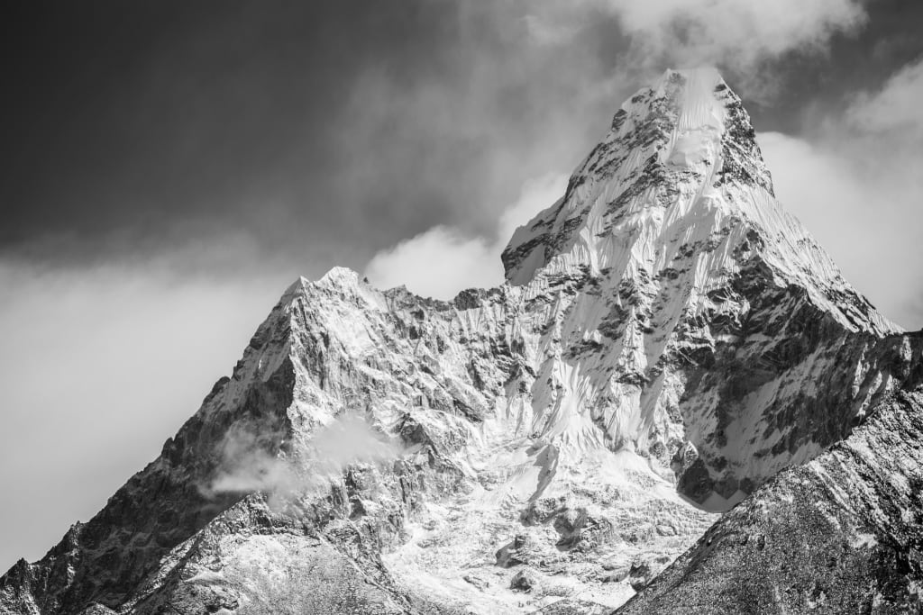 I look across the great white expanse. Through the white haze, I barely see the outline of the mountains in the distance. My body involuntarily shivers from the cold and anticipation. I pull down my mask to compare a postcard showing a lush paradise with a backdrop of three massive peaks, to the barely visible range in front of me. A red arrow points to the base of the mountain on the right. I begin moving again. I want to reach the foot of the mountain before sundown, then explore the cave tomorrow. I heave with each step as I pull my sled behind me. The wind picks up, swirling around me. The white air blurs my vision like static on an old television and I begin to lose what resemblance of a mountain range I had in front of me. I feel my heart palpitate wildly as adrenaline rushes through my body. The howling wind rushes past me. Was that a cry for help? Black shadows circle me like a shark about to charge its prey. The howling becomes so deafening I can’t hear myself shouting into the void. Then in an instant, everything stops. I see nothing but blinding white. I hold my arm out in front of me and it slowly fades to white as I extend it. Not into the snow, but a hazy white mist. I jerk my arm back as a ghostly figure rushes past me. Was that a laugh or a cry? Another shadow follows, then one on my right and two on my left. They begin to circle closer, slowly tightening the already small gaps between them. I make a dash to break free, but something pushes me and I fall into the snow, flailing like a fish out of water. I need to roll over and breathe, but something is holding my head down, deep into the snow. I feel finger-like appendages snake around my skull and through my hair. I thrash and fight so that I might catch one small breath of air. But try as I might, I still can’t breathe, there is only snow. I reach back and try to fight the thing that is thrusting my head forward, but there is seemingly nothing there. The edges of my vision grow dark. Finally an end to the white. I begin to embrace the encroaching darkness as a long lost friend. It seeps in behind my eyes and washes over me as I let go. I release my lungs in one final exhale, and my world turns from white to black.