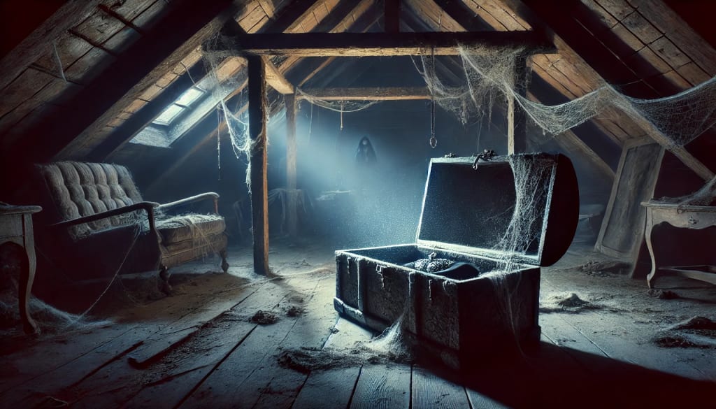 The attic was as dusty and cluttered as before, but something was different this time. In the far corner, there was a large, old trunk that Jess hadn’t noticed on her first visit. It was covered in cobwebs, the wood dark and rotting. The whispers seemed to be coming from inside it.