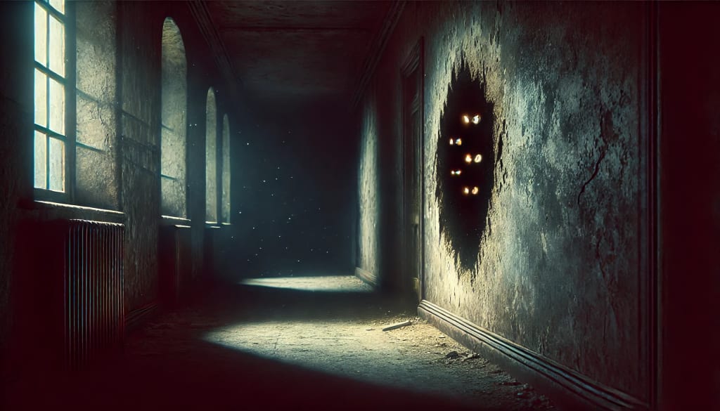 It wasn’t just the voices, though. It was the eyes. First, I assumed I was dreaming it or perhaps just tired after settling in and organizing everything. But every time I passed by the crack in the wall near the hallway, I could have sworn I saw something—eyes—looking out from inside. They were just tiny pinpricks of light, like reflections in the dark. But they were always there, lurking just beneath the thin layers of plaster, watching. Watching me.