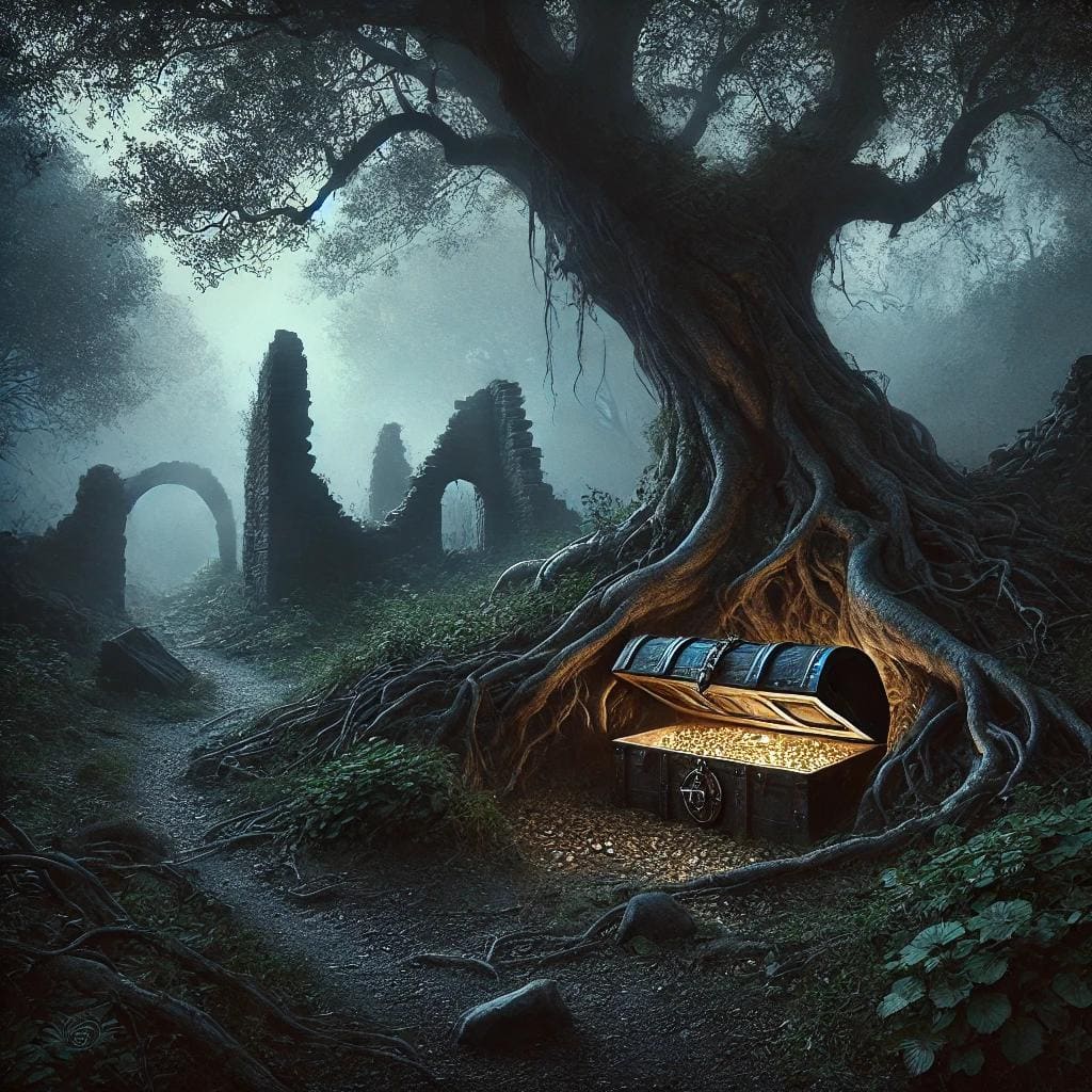 In the end, Evelyn’s greed won out. She began the ritual to claim the wealth, ignoring the warnings of the ancient being. As she completed the incantation, the ground beneath her feet trembled, and the ancient tree’s roots began to rise, revealing a hidden vault filled with gold and jewels.