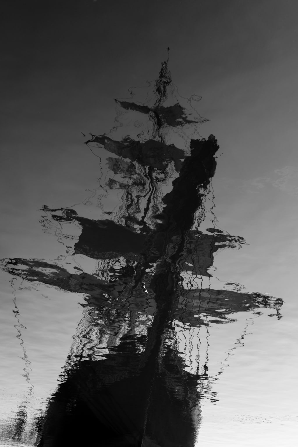 A bolt of lightning crashes down from the sky, striking the sword. The Man in Scarlet bursts into flames, his laughter turning into a fever-pitched scream. She cries out and falls backwards, the smell of burning flesh floating past her nostrils. Smoke from the flaming man swirls upward, and she watches as it ascends past the billowing sails. She squints as the clouds overhead twist in on themselves, more bolts of lightning crashing back and forth. The clouds are taking shape. They twist and contort until there is a face staring back down, the lightning crashing even more now to create two yellow eyes. Its mouth stretches open, and a horrible wailing scream rains down on the ship. She clasps her hands over her ears, feeling her mind rage against the visage in front of her. The Men in Scarlet on deck drop to their knees, laughing and praying.