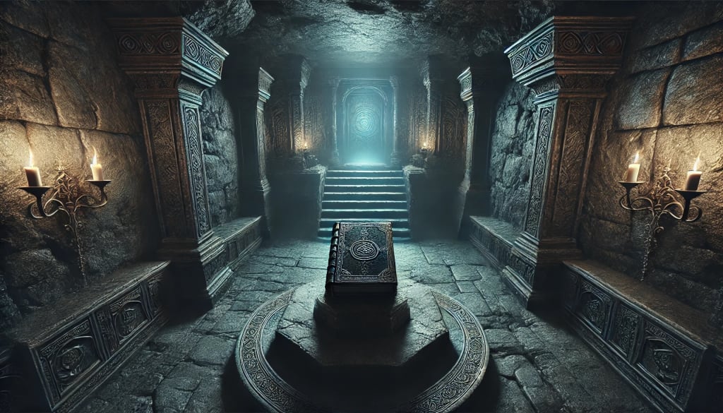 When I reached the bottom, my flashlight revealed a small chamber, perhaps fifteen feet across. The walls were rough-hewn stone, like something from a medieval castle rather than a house built in 1978. The chamber was empty except for a pedestal in the center, upon which sat a leather-bound book.
