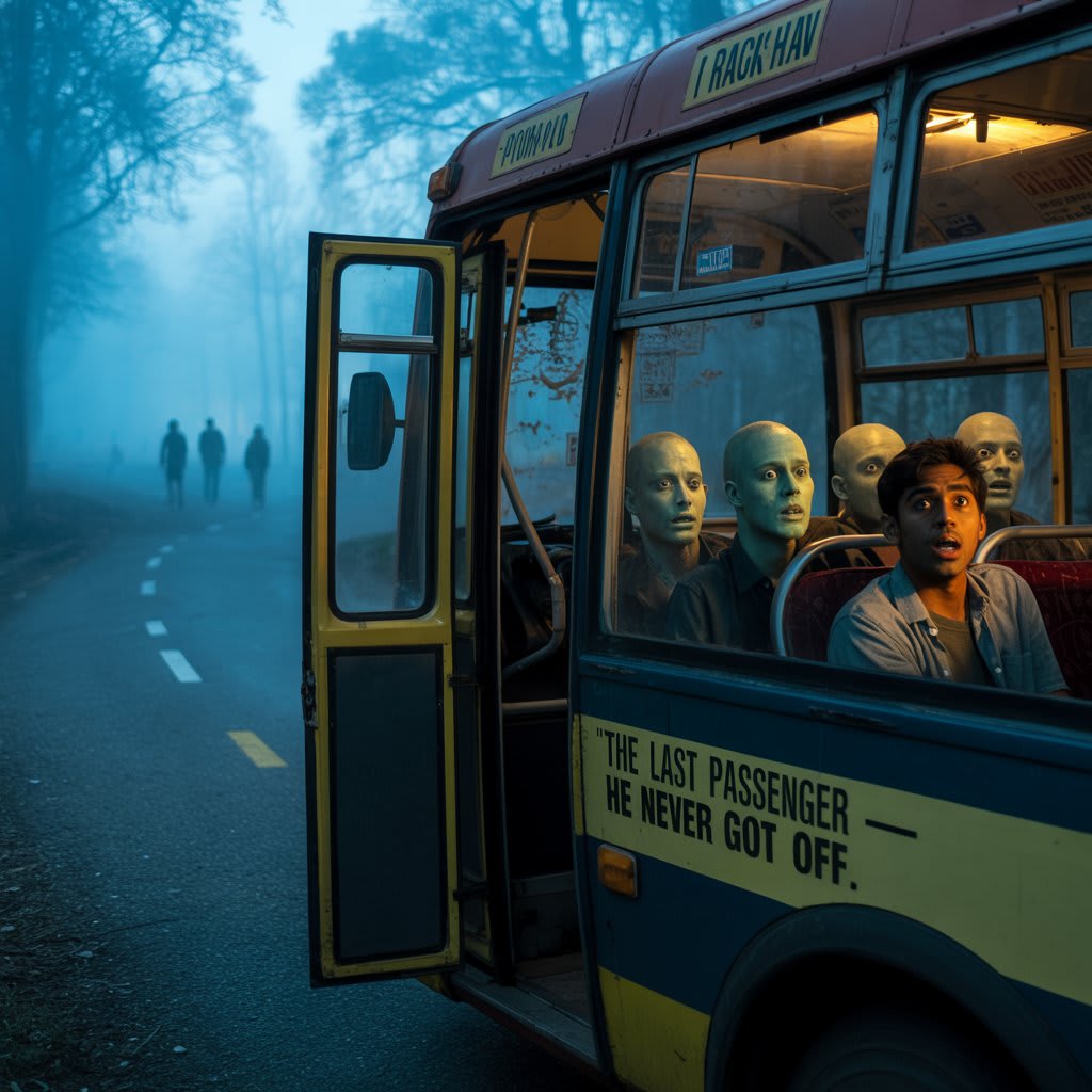It was 11:43 p.m. when Raghav boarded the last city bus from Sector 29. The streets were eerily quiet, the fog hugging the road like a living thing. He had missed his train and this was the only way back home.