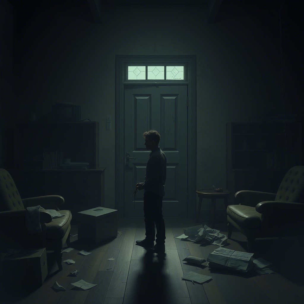 Inside was nothing. Just a black void that stretched on forever. A cold wind blew from the emptiness. At the edge of the room stood a figure. Thin. Ragged. Face hidden by matted hair.