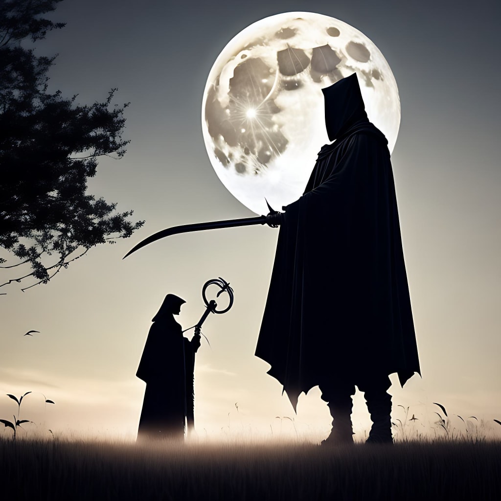 Suddenly, a loud knock echoed through the town. The bravest of the townspeople, a young man named Jack, cautiously opened his door to find the figure standing before him. The figure was tall and cloaked in black, with a scythe glinting in the moonlight.