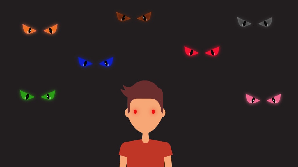 "Ghosts!" Steve shrieked from his humble apartment. "Shut the fuck up you cry baby" said the red one. "Listen to me Steve and hear me very well" said the grey one with a level of conciseness the other ghosts lacked. "We are not weak ghosts, we are demons, I am Pride, pink is Lust, red is Wrath, green is Greed, orange is Sloth, blue is Envy, and I am sure you aren’t dumb enough to know who that fat brown bastard is". "I could really go for a burger" said the brown one, nonchalantly. "Shut the fuck up Gluttony" Wrath barked. "The Seven Deadly Sins!" exclaimed Steve. Pride turned his head to Steve. "WE ARE NOT THE SEVEN DEADLY SINS...the Seven Deadly Sins are based on us."