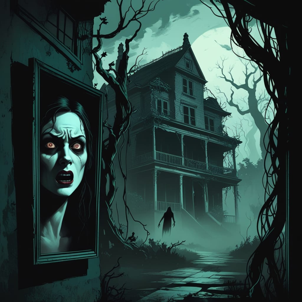 And then he saw it—the woman's portrait. She was altered now. Her face was contorted with a cruel grin, and her eyes... her eyes were no longer watching Eleanor. They were on *him*.