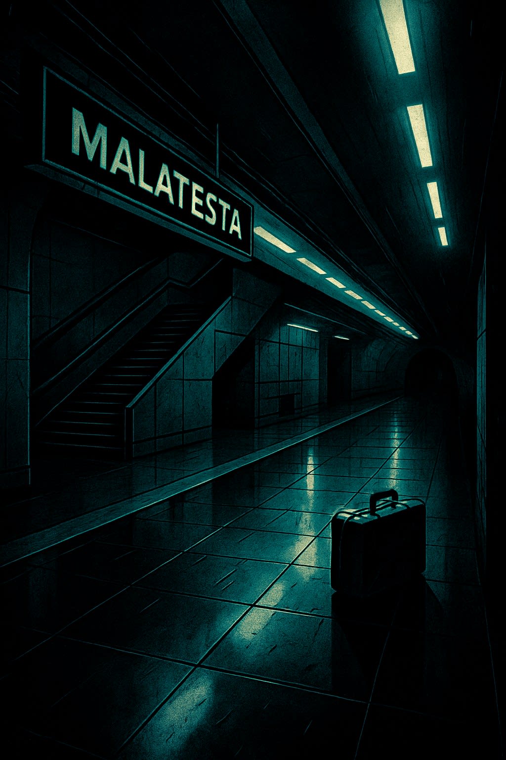 When I reached the platform, it was completely deserted. No trains, no wind. Just the sterile white glow of the neon lights on the floor. I walked a bit closer to the tunnel and noticed one of the lights was flickering.