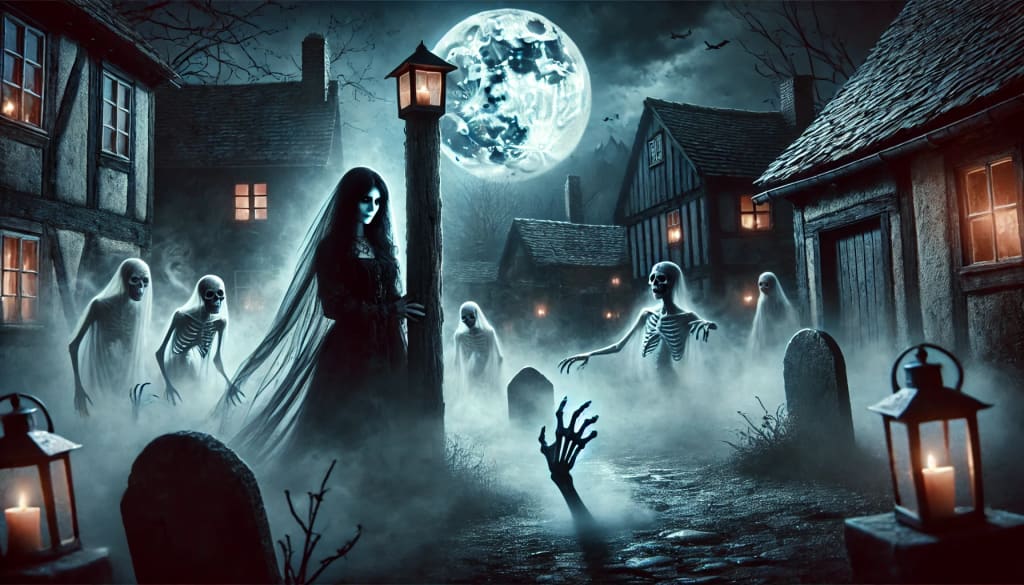 The villagers locked their doors and windows, trembling inside their homes. They knew what the dead were looking for: a victim. Each year, on this night, one person would be taken, never to be seen again.