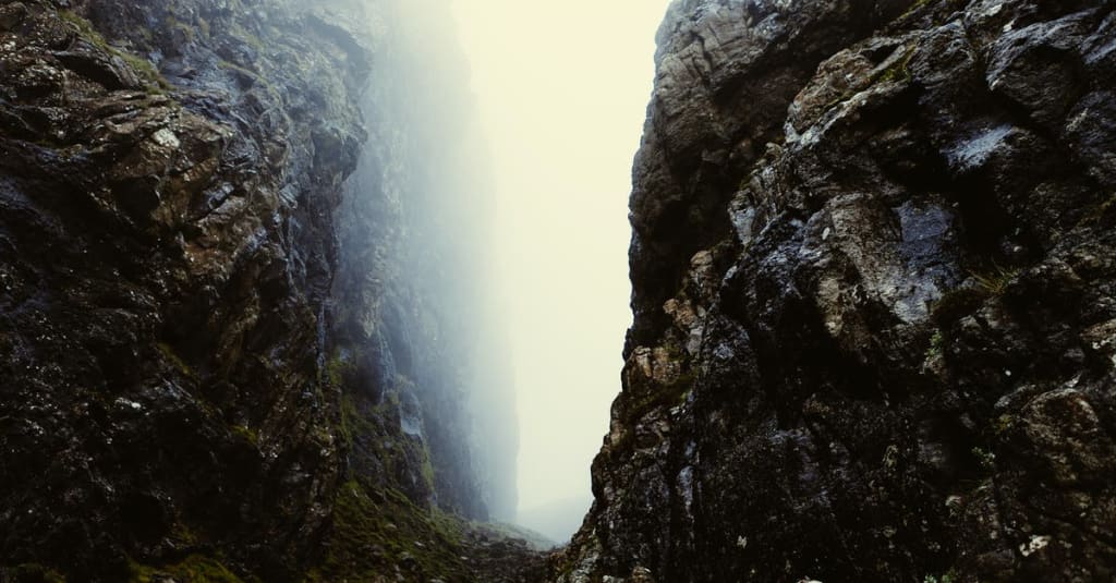 She kept a steady pace across the cobbles, watching the birds in the trees; the trickle of water into the still pools throughout the forest coupled with the call of the birds in the high trees, almost in perfect harmony with each other. Stacks of smooth rocks were placed periodically along the path so that one could find their way in heavy snow. At their bases sat petrified shards of bone. These waypoints remained as memorial to those that could not make it through the forest, either being lost in the snow or falling victim to the violence that once wreathed this land. Frost clung to the trunks of the tall trees, heavy snow pulled the boughs closer to the earth below, the mist from the sea mixed into the thin haze that permeated the scene. The hilts of broken swords and the shafts of buried spears peered out from the snow, markers of a time that was best left forgotten.