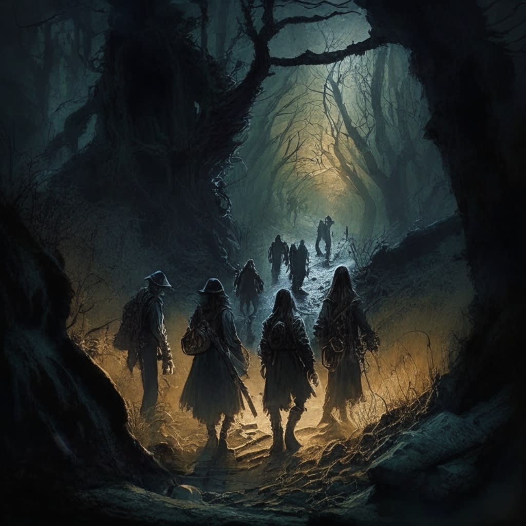 But their ordeal was far from over. They now found themselves in a labyrinthine underground tunnel, lit only by their flickering flashlights. The walls seemed to move and whisper, and strange, twisted creatures lurked in the shadows, eager to ensnare their weakness.