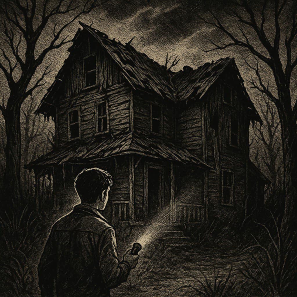 He brought a small camera, his phone, and a flashlight the following day, just before dusk. He told himself, "Just for fun." He followed a narrow trail through the trees, birds screeching overhead as if warning him. Finally, the Hollow House emerged from the shadows—looming like a skeleton in the dying light.