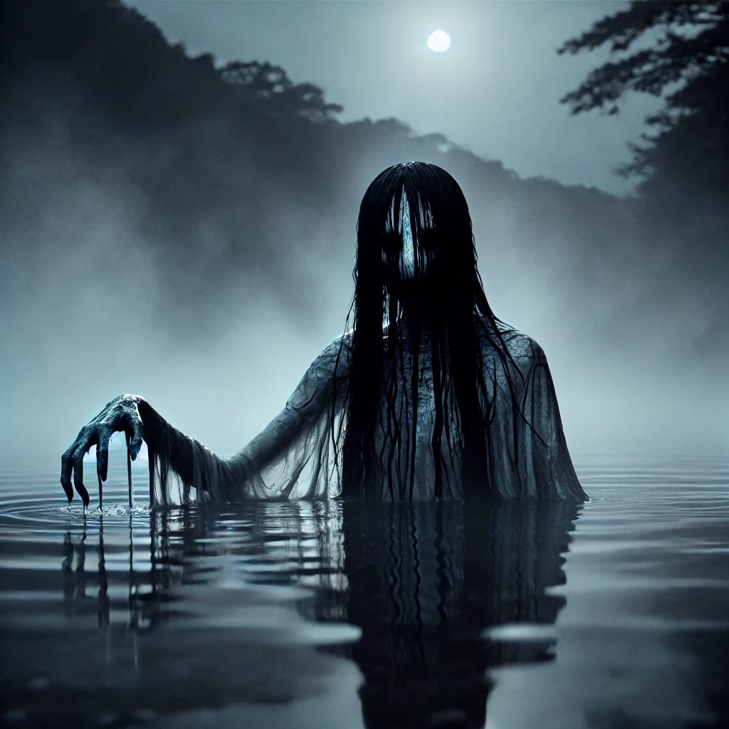 A pale figure slowly emerged from the river, its skin translucent and waterlogged. It had long, dark hair that clung to its face, obscuring its features. But An could see its hollow eyes staring directly at her. A voice, deep and raspy, echoed from the figure’s mouth. "You should not have come. I will pull you into the depths, just like all the others."