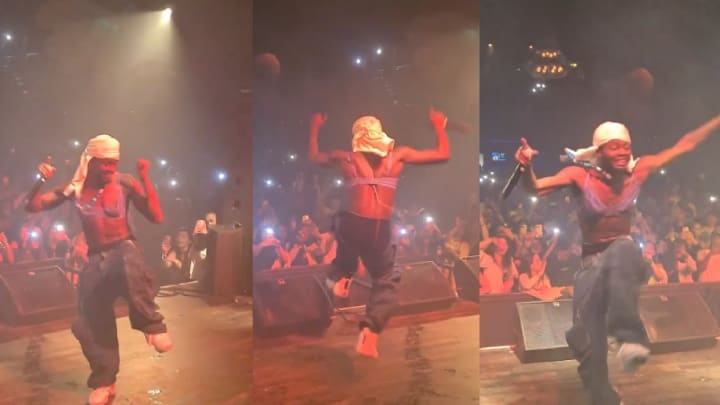 During a recent concert, Nigerian singer Omah Lay was very excited and very hype, so was the crowd. At one point, in the midst of the energy of it all, a female fan threw her bra at the stage. Nobody expected what would happen next: Omah Lay put on the girl's bra and kept on performing energetically. It's so wild.