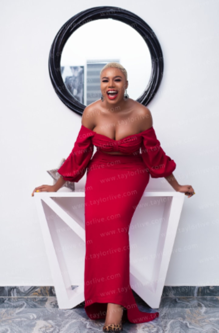 When Nancy Isime appeared on the cover of Taylor Live Magazine, some people were very surprised with the pictures used for the magazine cover, as they believed the picture showed way too much cleavage, especially for someone like Nancy Isime. In the pictures, Nancy Isime wears an off shoulder red top with a long high waist skirt. However, the top reveals a lot of Nancy Isime's breast. After taking to social media to post the pictures, one user said "Who you con dey show breast", another said "please try to cover your body it's too bad" amidst more comments.