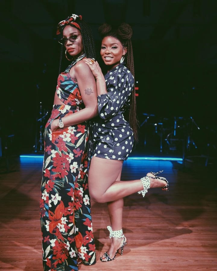 Nigerian singers Seyi Shay and Yemi are another duo whose friendship goes back a very long time. As colleagues, they have collaborated on a number of projects: Yemi is featured on Seyi Shay's song "Pempe", Yemi had Seyi in her "Boyz" music video, etc. But outside of just being colleagues, these two women are long-time friends. According to Seyi Shay during an interview about their friendship, Seyi Shay said: