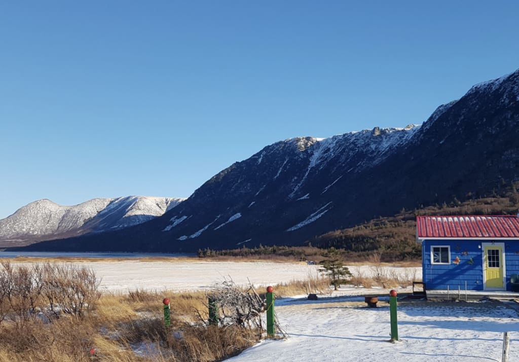 The cabin rests in Cape Ray on the Trans Canada Highway, its back facing the mountains, shoulder blades against the shoreline. Salmon River is a deceptive name- the river is thick with trout and it snakes through the landscape like a fault line trying to get it right and continuously falling off the wagon. At the beach the man catches fish, easy as “fishing in a bucket”. He lays them on the shore and pauses to take a photograph, sunlight glinting off belly scales, his Swiss Army knife resting in the sand.