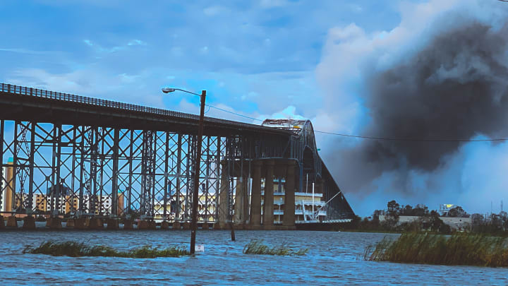 A riverboat that was sitting idle at a casino, broke loose during the storm and crashed it into the bridge.