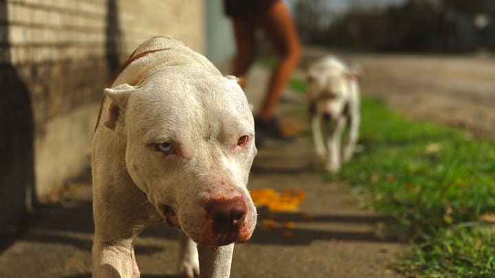 Dogs, left behind to fend for themselves by their owners, search for shelter and food.