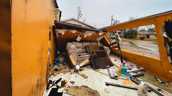Entire roofs ripped from homes. Apartment complexes have their second floors blown off. Strip malls are shredded. The interior of businesses was exposed.