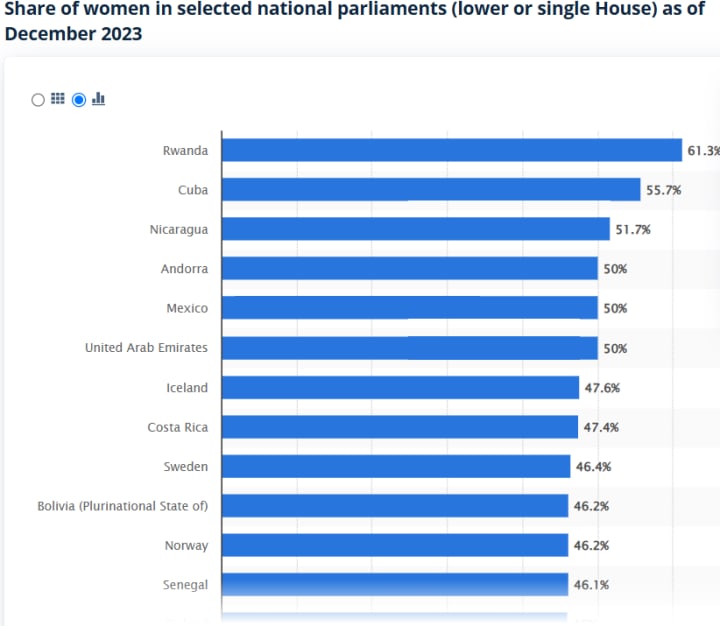 Statista (2022). Countries with largest share of women in parliament 2020. [online] Statista. Available at: https://www.statista.com/statistics/267028/women-in-selected-national-parliaments/.