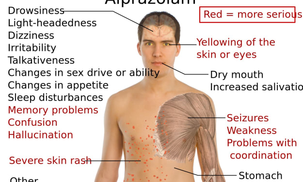Other side impacts include: transient tiredness commonly experienced amid the primary few days of treatment, a feeling of depression, loss of orientation, headache, sleep disturbance, confusion, irritability, aggression, excitement, and memory impairment. bromazolam uk