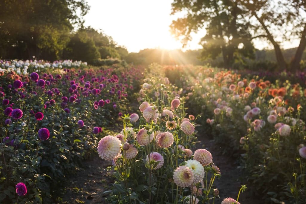 Amos handed the envelope to Dahlia as they crested the hill. “You found your connection last time when you stopped trying so hard.” Dahlia didn’t hear Amos’s words, or anything for that matter. A flourishing patch of Dahlias greeted them as the hill evened out. Dahlia was moved to tears by the beauty, the heavy silence. Every color imaginable mixed together and swaying ever so slightly to the beat of the earth. A narrow path led to a fountain at the center of the patch. Amos led and Dahlia followed, running her hands through the knee-high flowers. Amos placed both bouquets in the fountain and spread them out around the rim.