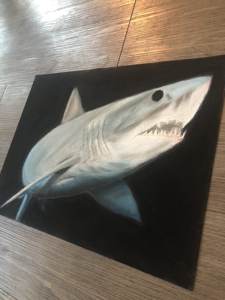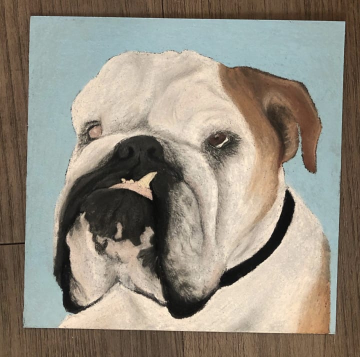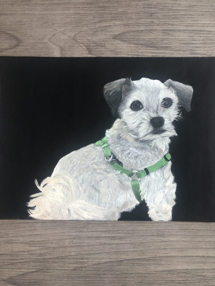 I knew I wanted to continue on with some kind of an artistic hobby, but I was not about to wait another 3 months for more numbered canvases. I had attempted to paint on my own before, but I just didn’t quite have the knack for it. So I spent some time looking into artistic methods that popped out at me. It was in this search that I discovered pastels. I follow an artist on instagram who uses pastel chalks. His name is Noel Fielding, and if you watch GBBO religiously like me, you’re familiar with him as well. I was incredibly drawn to his art. So I ordered a set of clunky pastels, and began playing. And playing is exactly what it felt like. The more I messed around with them, the more I realized that I had a natural talent I was completely unaware of. I made mistakes, and kept going. I made things that I thought were “as good as I was going to get”, but I kept getting better. Slowly but surely, drawing became a real skillset. It wasn’t until I posted a picture to Instagram of a drawing I had done of my friends dog, that things really started to take off.