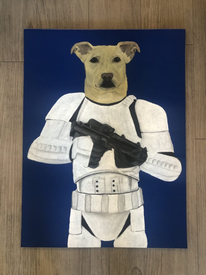 I started getting flooded with requests to commission pet portraits. I have been booked solid since November 2020. So while this piece isn’t necessarily a ringing endorsement for Instagram ads, it is, I suppose, a commentary on the strange nature of life and hardships. So many of us have spent the last year trying to fill these holes that have been poked into our metaphorical life-boat. We often times do this with purchases. It rarely is the product itself that fixes an uncomfortable situation, or mental health on the fritz. Rather, it is what those purchases, conversations, or experiences, lead you to. I’m not sure that I believe in the whole, “everything happens for a reason”, line of thinking. But looking back on my life, it’s hard not to say every minute, insignificant, decision, didn't lead somewhere. I hope those of us who were lucky enough to survive the last 12 months are able to look back and feel the same way.