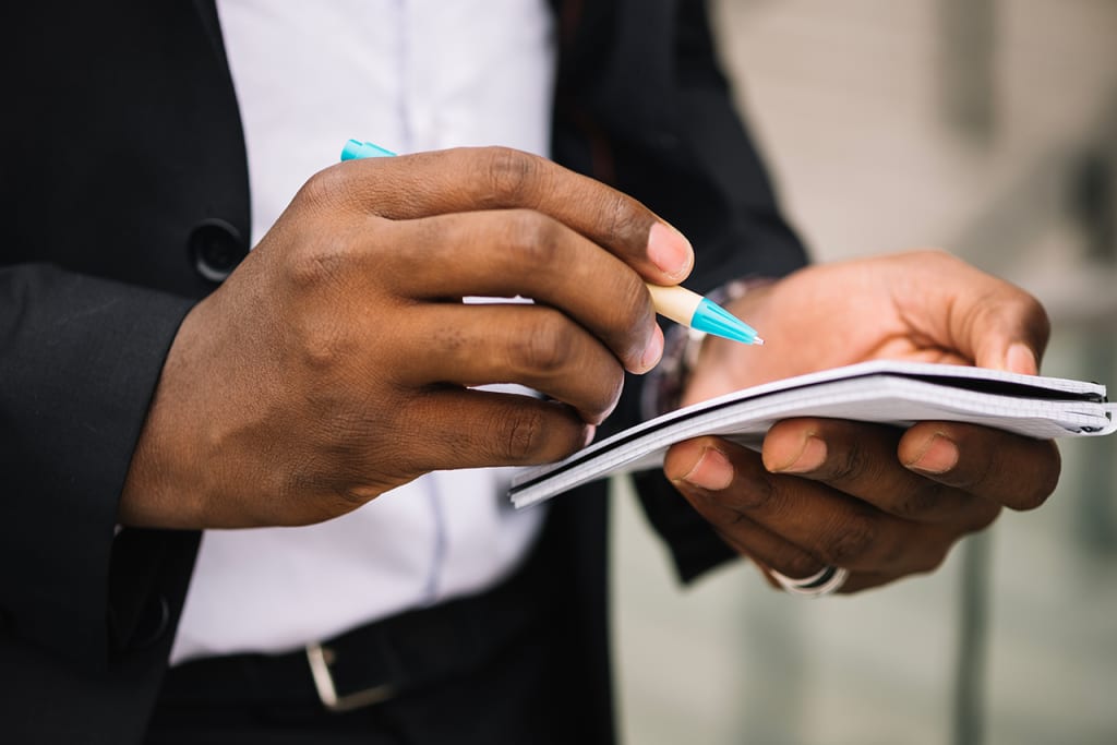Keith opened up his black notebook to a page that had a list of names and wrote ‘Russel Brackett’ at the bottom of the list. He placed his attached bookmark string on the page and closed the book. He reached out his hand for a handshake. Russel obliged, hesitantly, as he couldn’t deny his attraction to this man any longer. The two men sat there shaking hands and looking into each other's eyes for a few seconds and then finally let go even though they felt the urge to stay there.