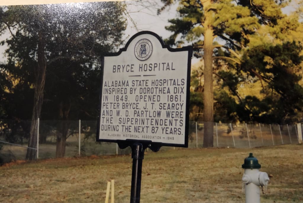 One day after work I happened to drive by a big sign up on a hill, "The Old Bryce Cemetery from 1861". We had worked on several patients from Bryce, and I knew it to be a psychiatric hospital. I suddenly wanted to see the gravestones in that cemetery. So I parked and walked up the hill. I was somewhat taken aback when I got up and into the actual cemetery----because at first I couldn't see any gravestones. But as I studied the landscape, I started to see them: little metal crosses about a foot high, dotting the lawn. These little crosses had nothing on them but a number----quickly fading and rusting in the weather. I guessed they were medical record numbers for patient confidentiality. It started raining while I stood there----which seemed appropriate, as I thought about all these nameless people, secreted away by a society that did not not want them on public display. I went home and called Bryce to ask if they could use a volunteer for 10 weeks.