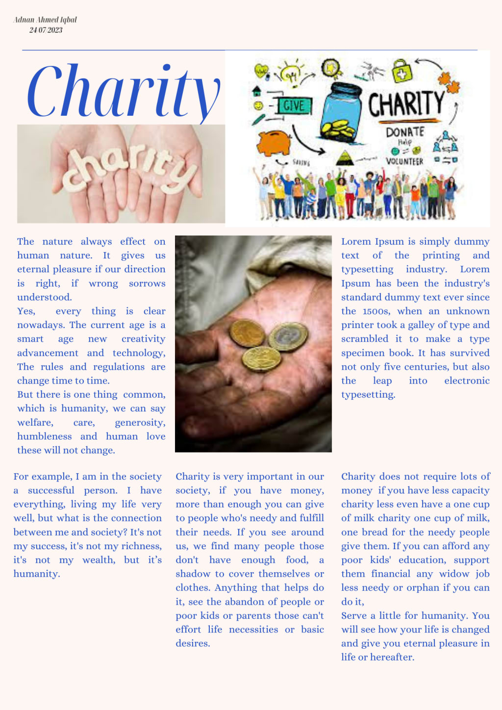 Poeples are blessed those serve there wealth or their energy in th way of humanity .... either in any form Charity or xyz ......