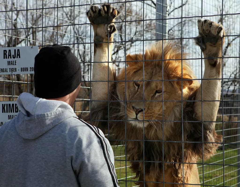 Jone quickly realized that the Lion was neither tamed nor polite but only the boundary of cages is making him to look like in that way.