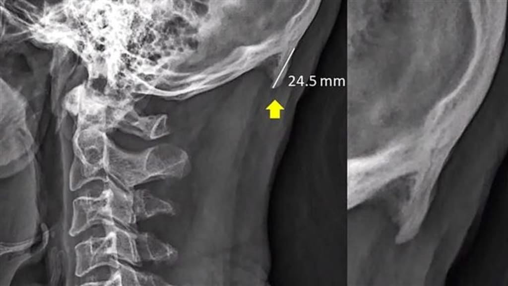 As we crane our necks forward to gaze at our screens, we unwittingly apply extra pressure to the region where neck muscles connect to the skull. To compensate, the EOP gradually elongates, growing by several millimeters. This fascinating phenomenon has even earned itself a nickname: "text neck."